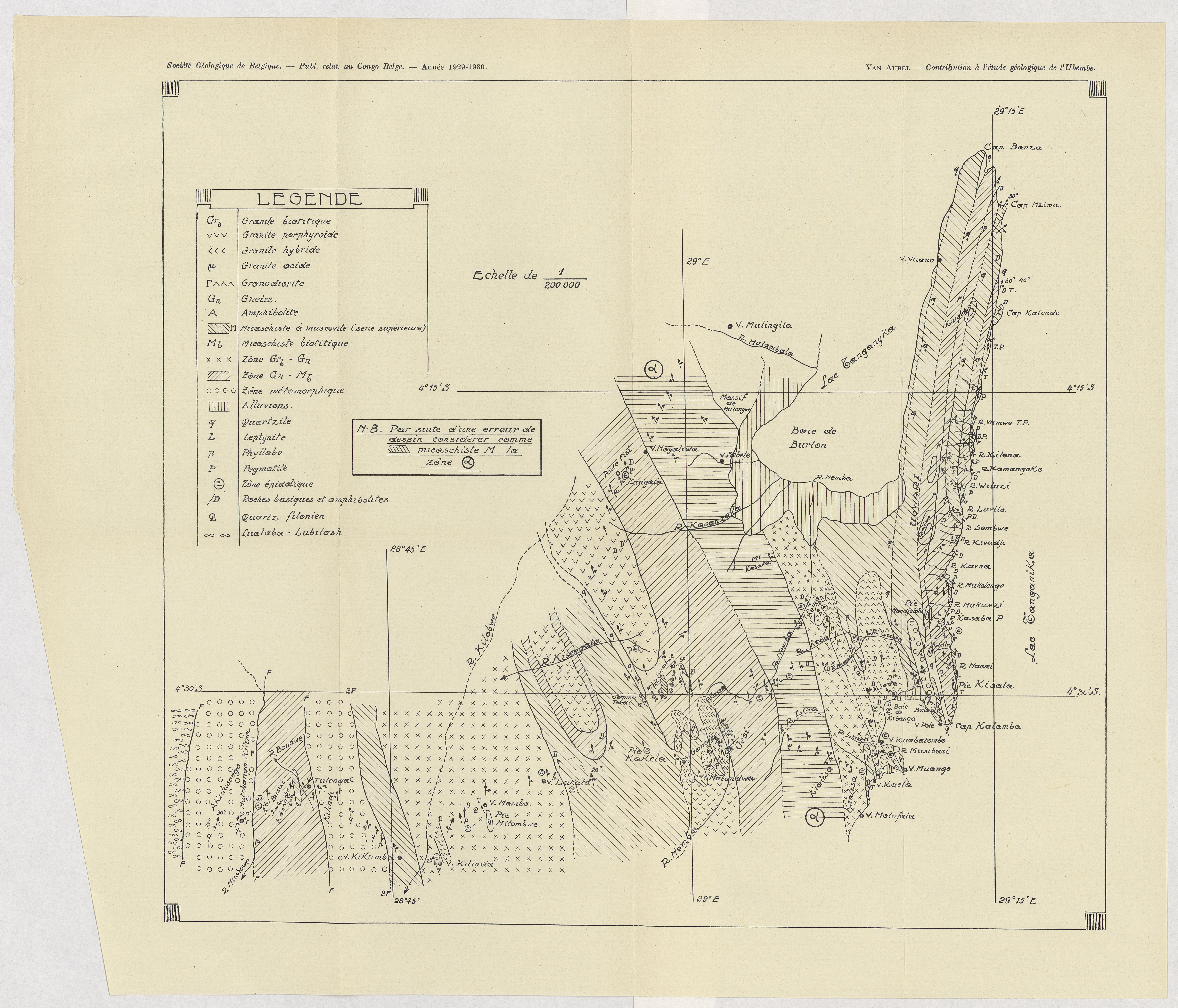 René van Aubel, «Contribution à l’étude géologique de l’Ubembe (Tanganyka-Congo Belge)», Annales de la Société géologique de Belgique [En ligne], Volume 53 (1929-1930), Publication relative au Congo Belge et aux régions voisines - fascicule 2, C87 – C140 URL : https://popups.uliege.be/0037-9395/index.php?id=6071.